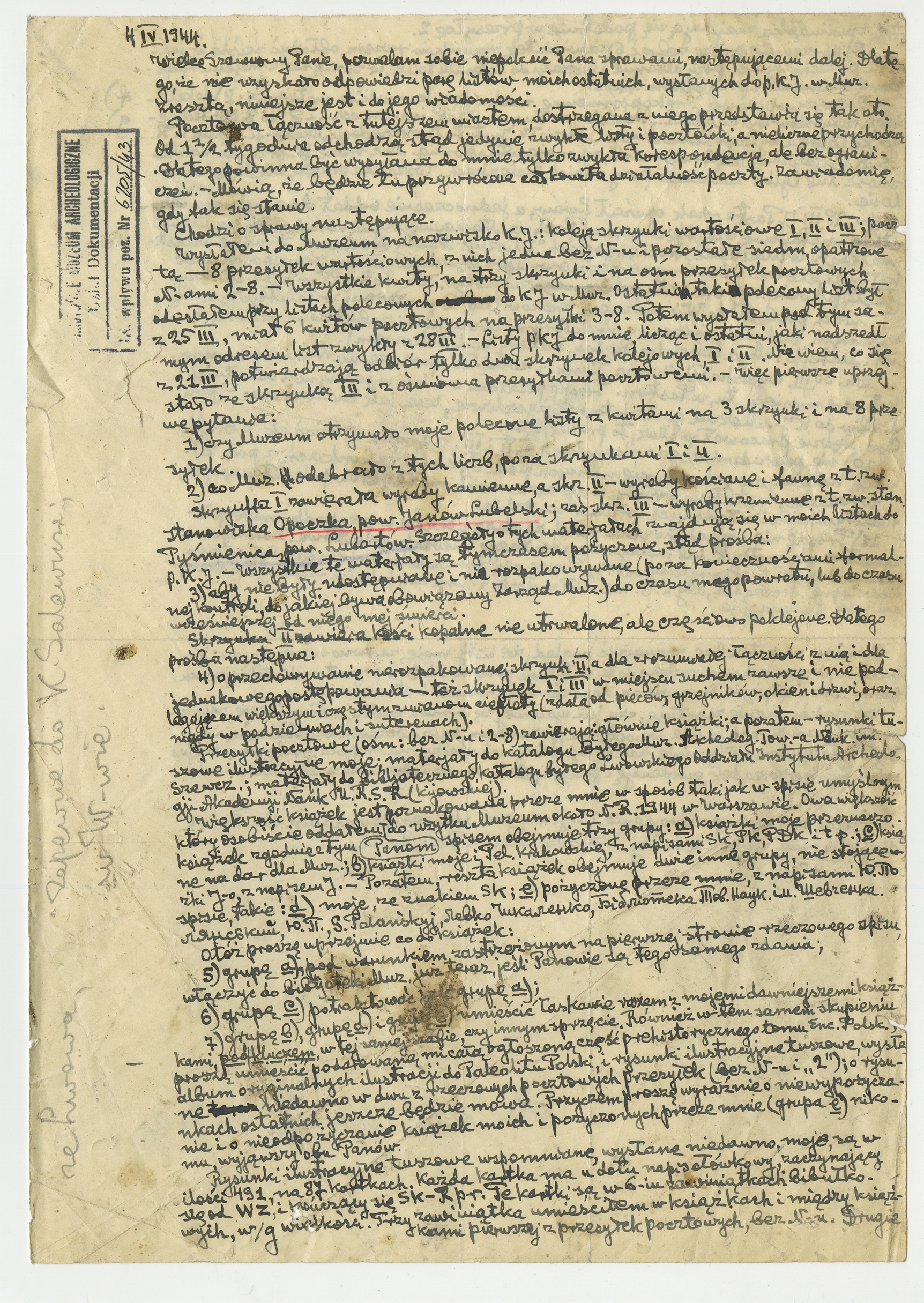 Rękopis - list Stefana Krukowskiego z dnia 4 IV 1944 roku do K. Salewicza (?)