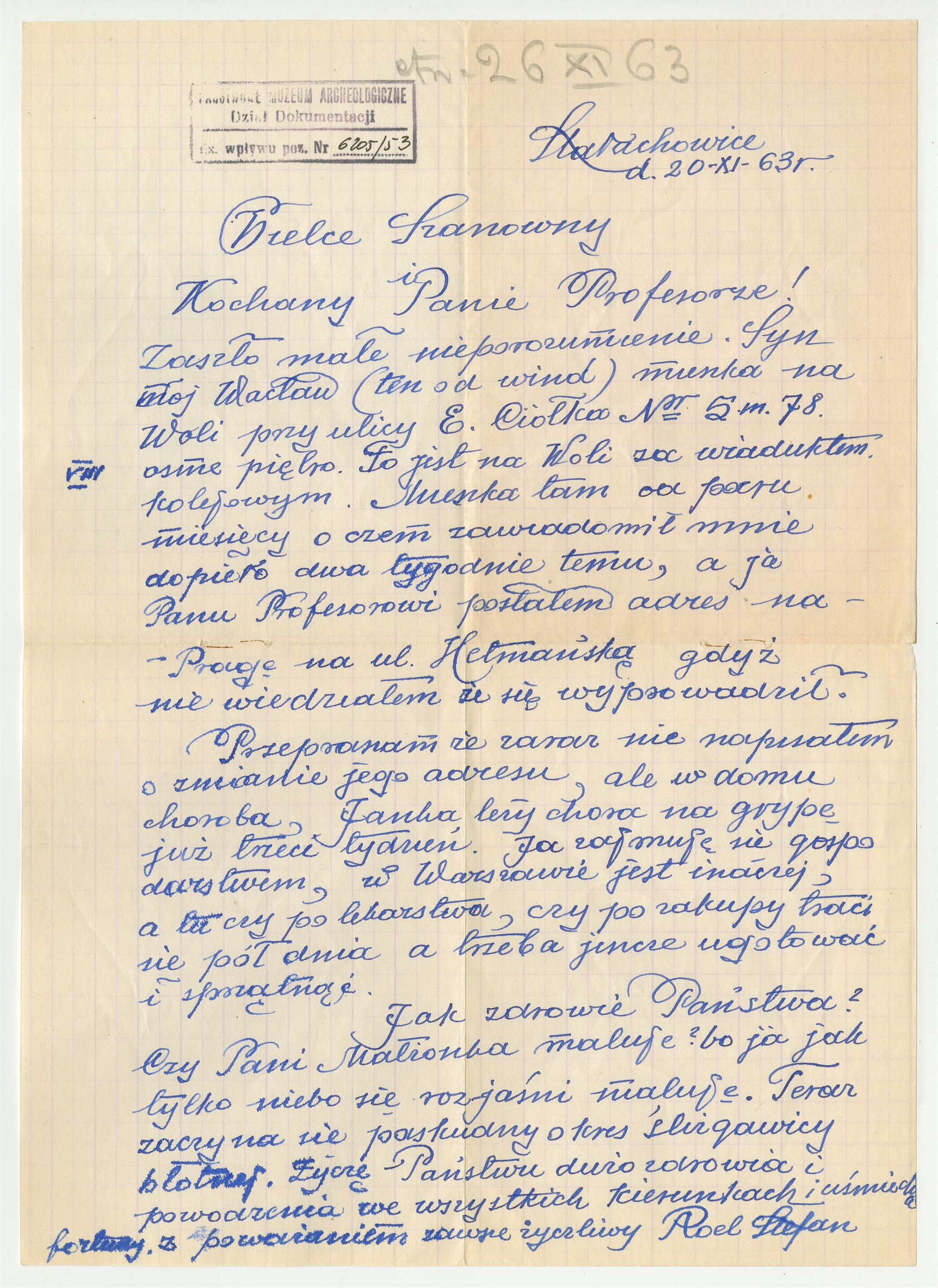Rękopis - list Stefana Roela do Stefana Krukowskiego z dnia 20 XI [19]63 roku