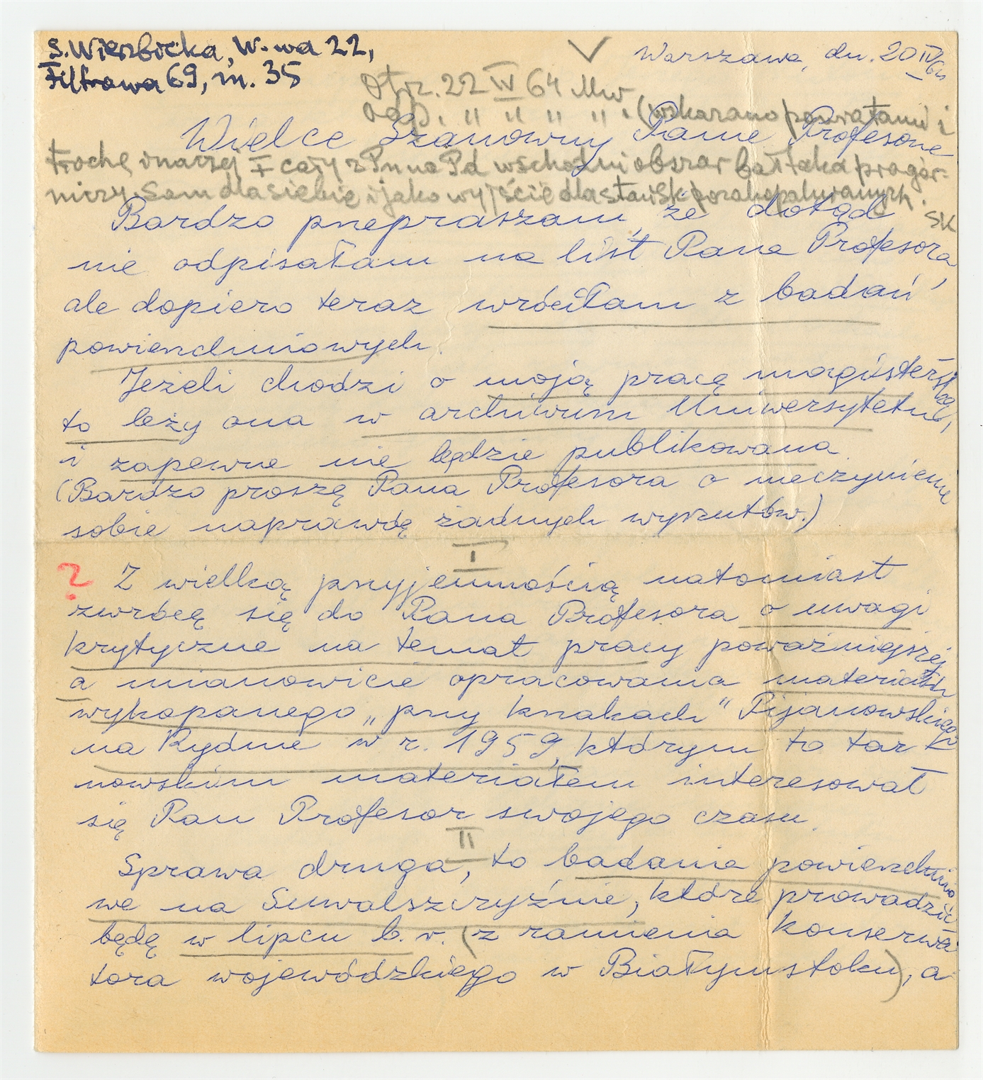 Rękopis - list Sylwii Wierzbickiej do Stefana Krukowskiego z dnia 20 IV [19]64 roku