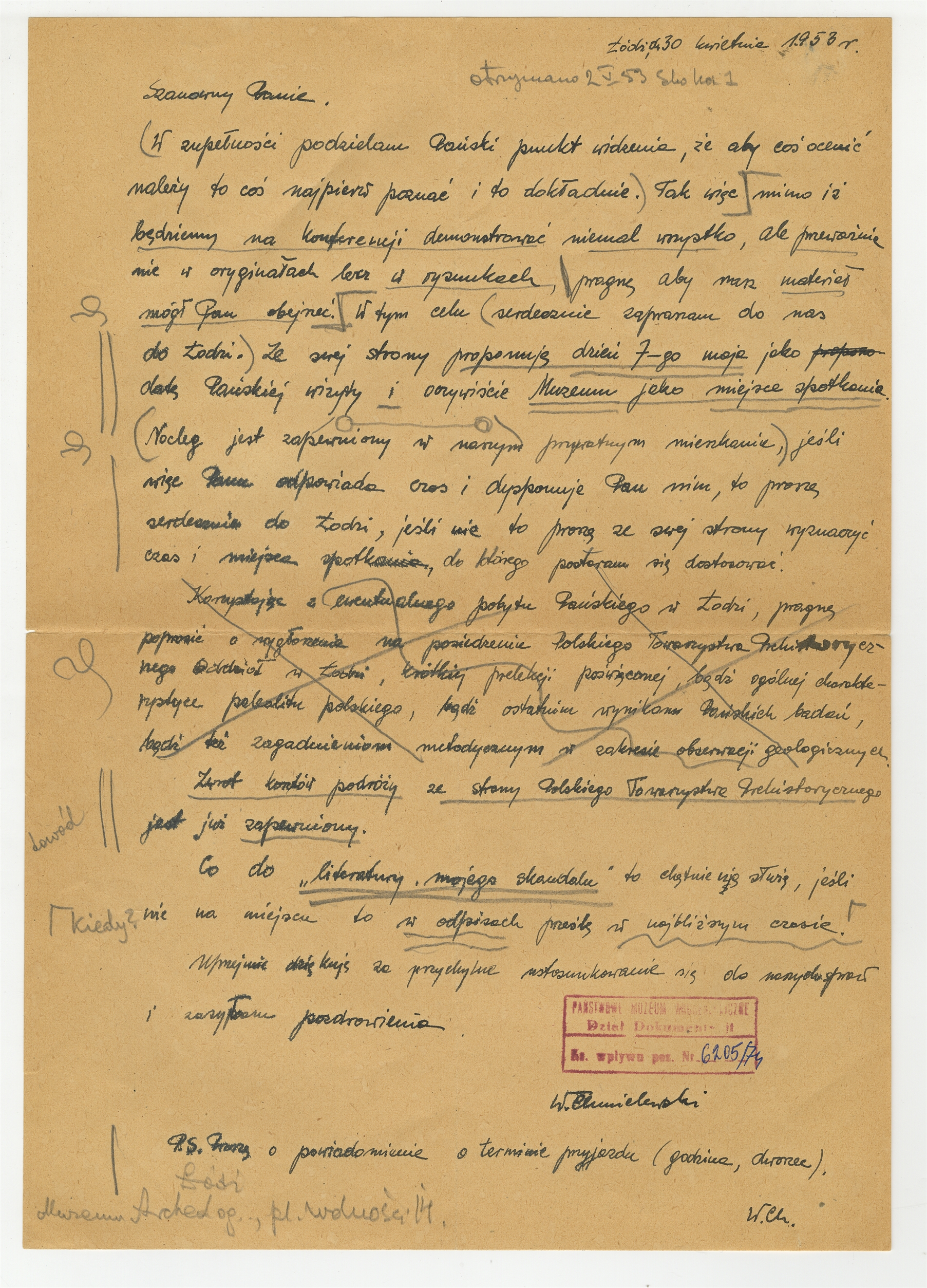 Rękopis - list W. Chmielewskiego do Stefana Krukowskiego z dnia 30 kwietnia 1953 roku