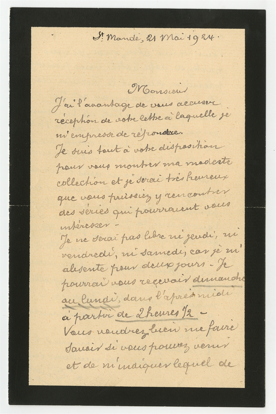 Rękopis - list w języku francuskim L. Giraux do Stefana Krukowskiego z dnia 21 maja 1924 roku
