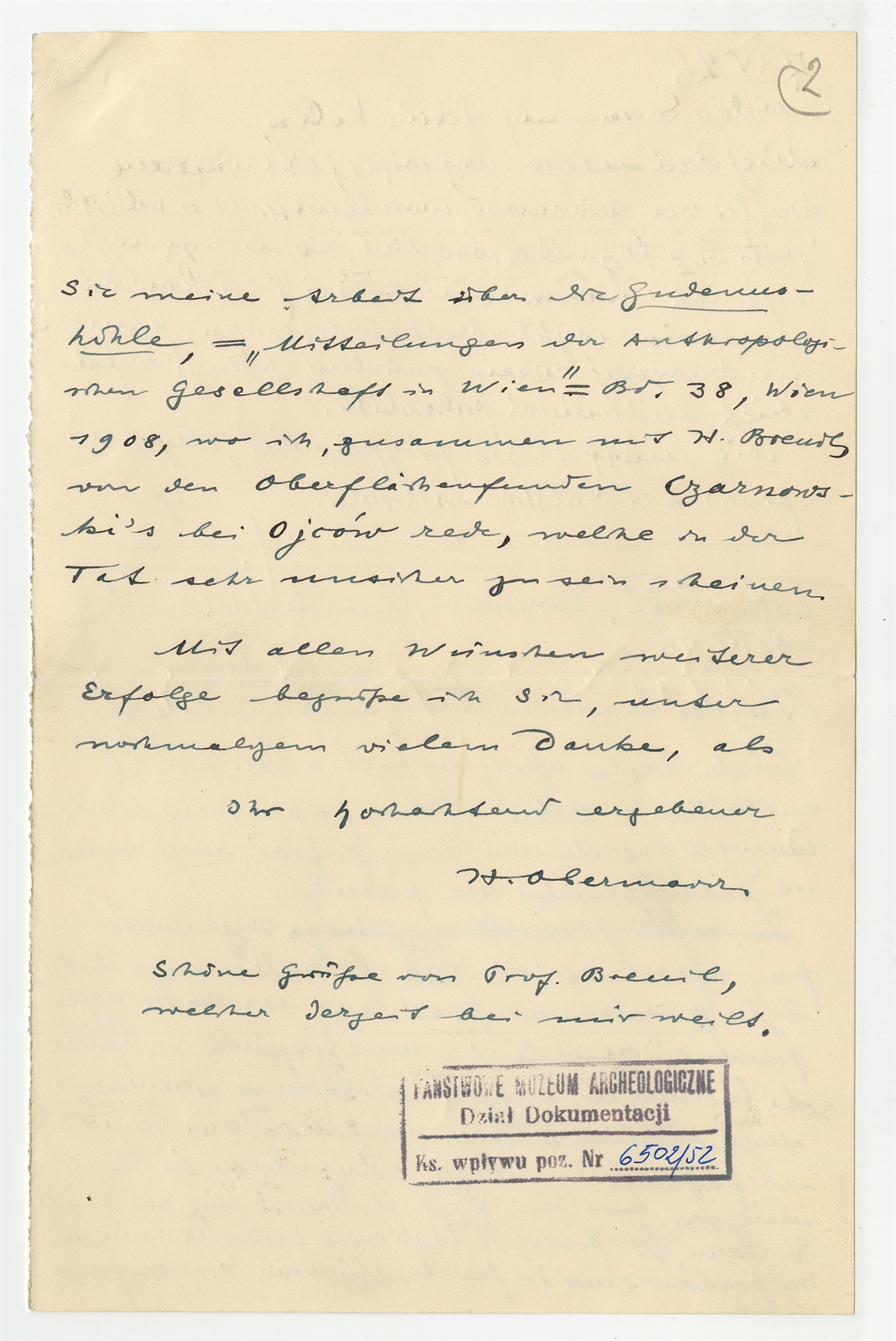 Rękopis - list w języku niemieckim Hugo Obermaiera do Stefana Krukowskiego z dnia 7 IV [19]26 roku.
