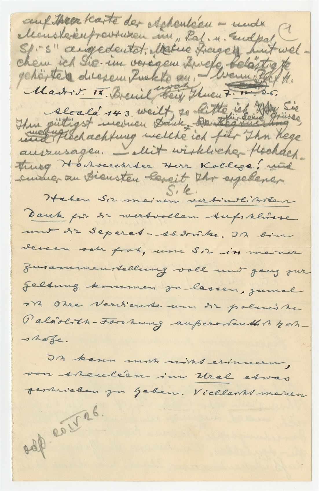 Rękopis - list w języku niemieckim Hugo Obermaiera do Stefana Krukowskiego z dnia 7 IV [19]26 roku. Rękopis - brudnopis odpowiedzi Stefana Krukowskiego w języku niemieckim na list (cd)