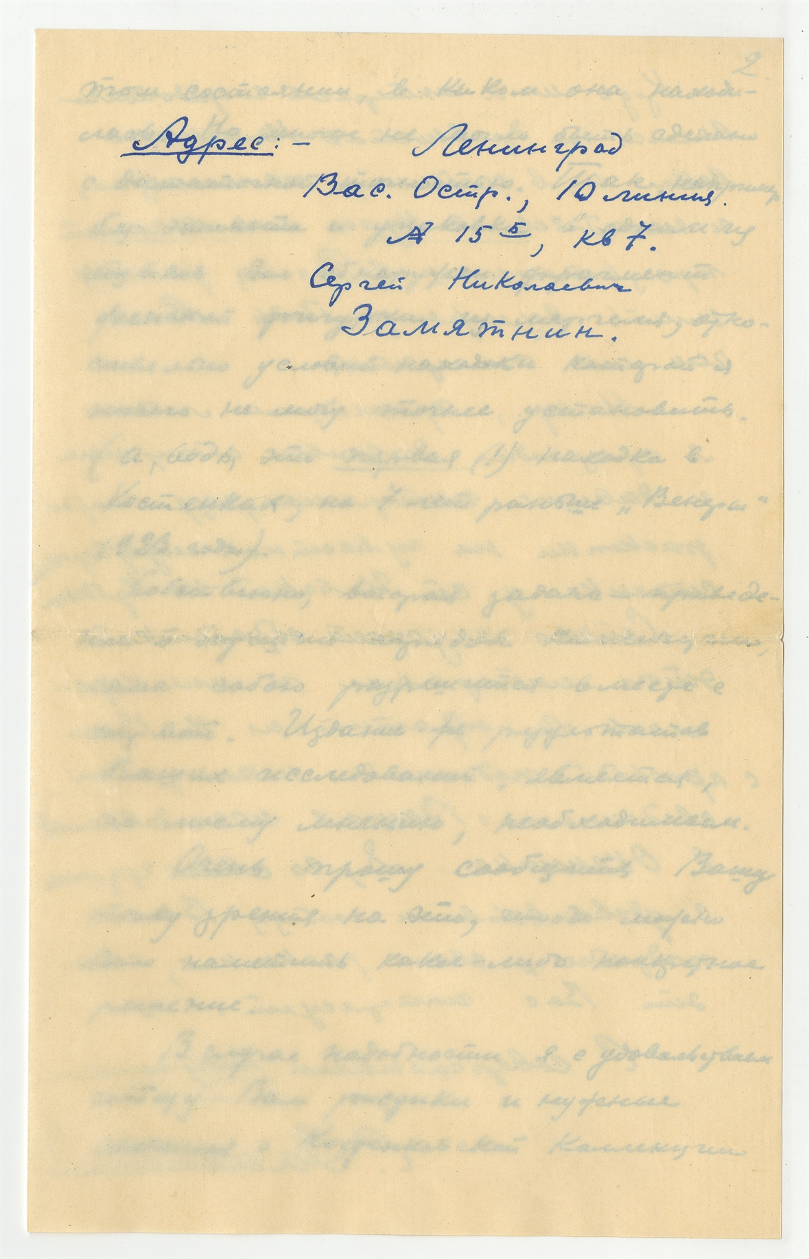 Rękopis - list w języku rosyjskim Siergieja Zamiatina do Stefana Krukowskiego z dnia 10 IV [19]27 roku (cd)