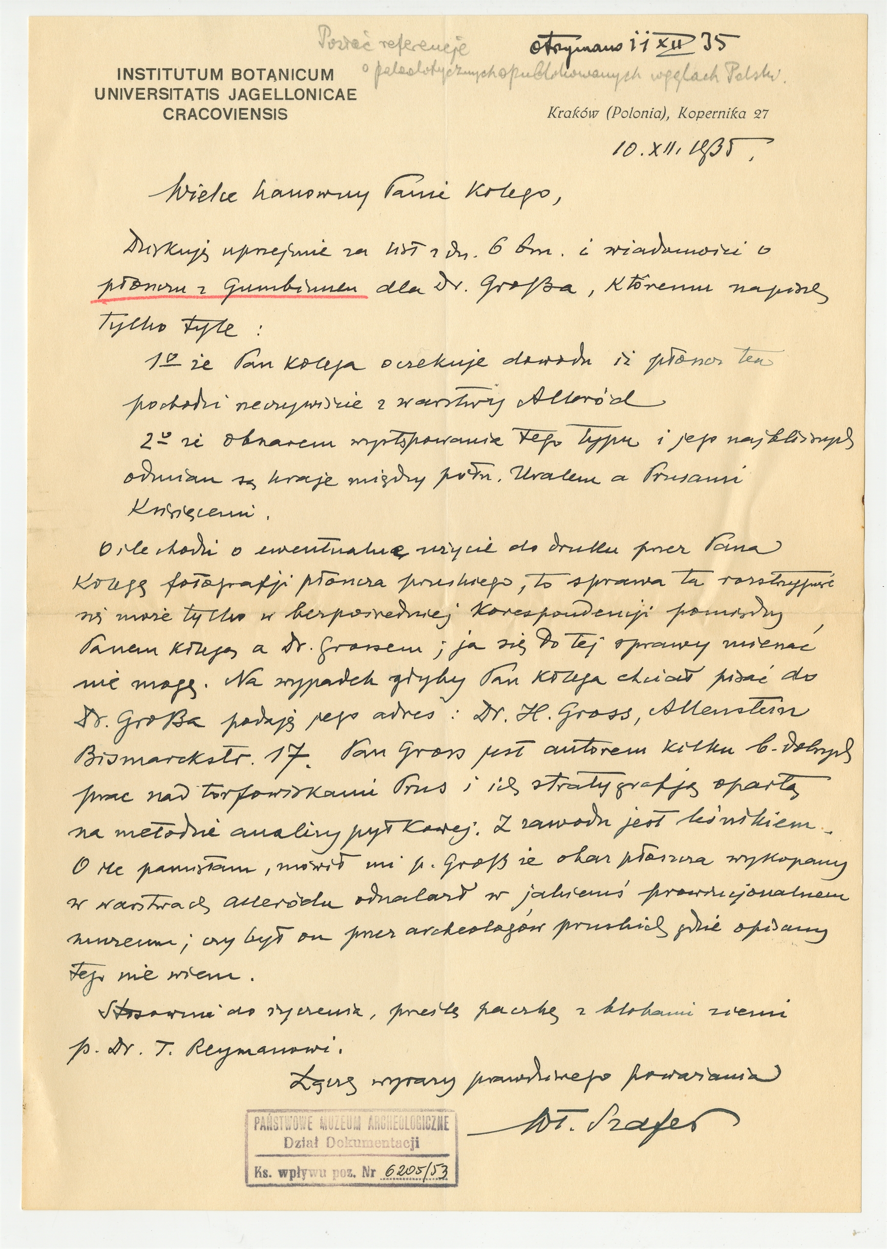 Rękopis - list Władysława Szafera do Stefana Krukowskiego z dnia 10 XII 1935 roku.