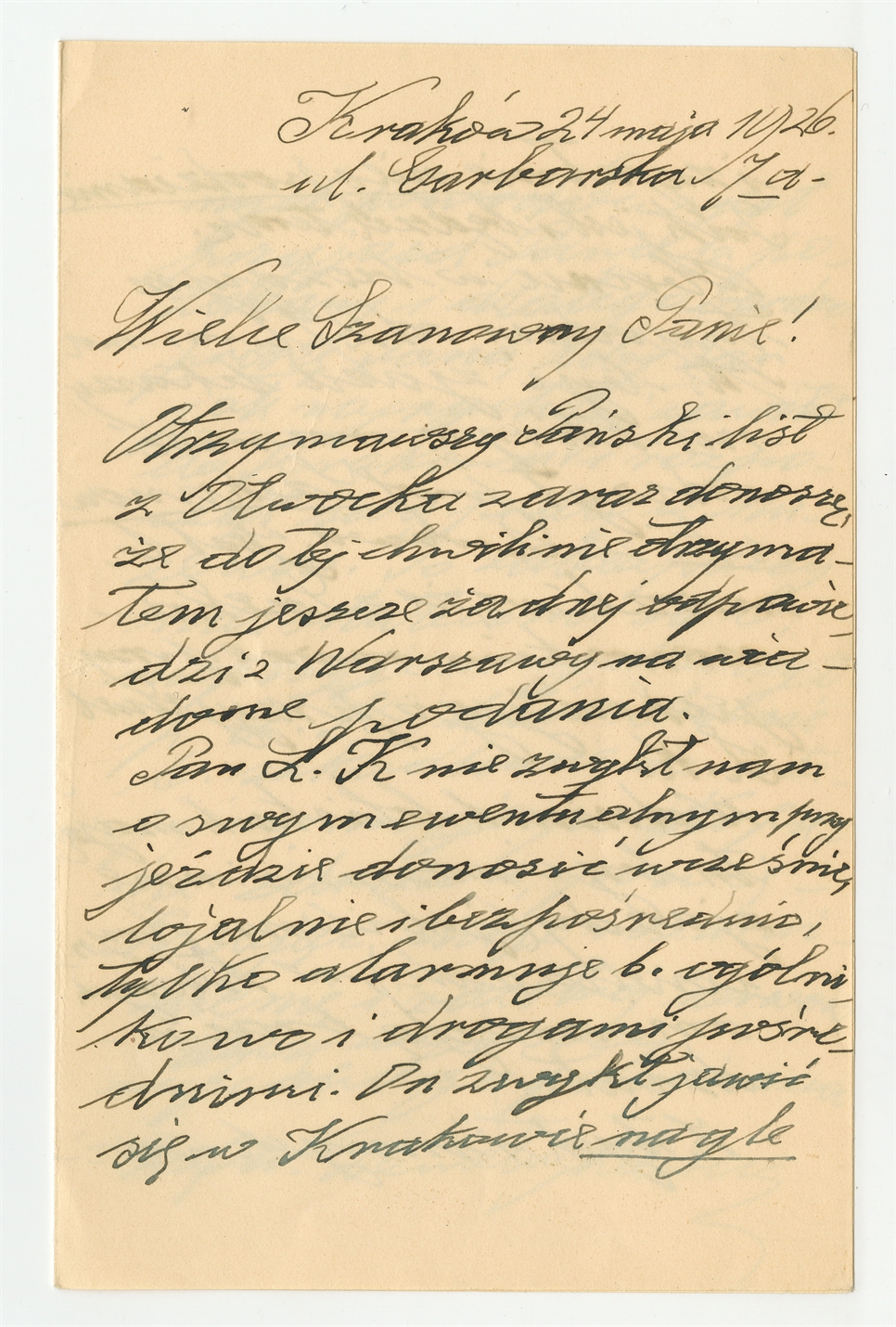 Rękopis - list Włodzimierza Demetrykiewicza do Stefana Krukowskiego z dn. 24 V 1926 r.