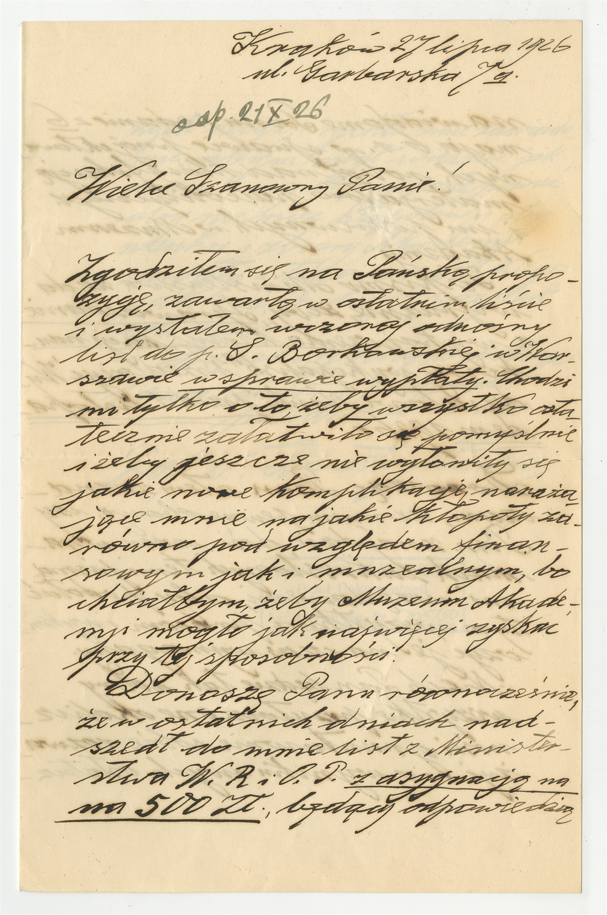 Rękopis - list Włodzimierza Demetrykiewicza do Stefana Krukowskiego z dn. 27 VII 1926 r.