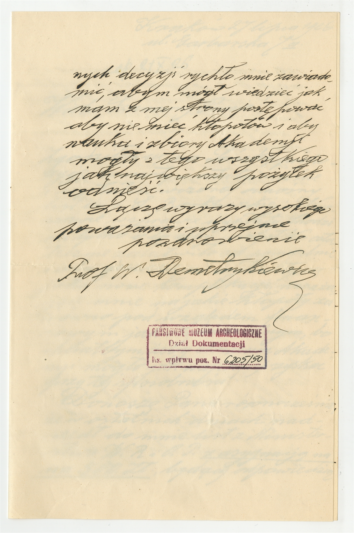 Rękopis - list Włodzimierza Demetrykiewicza do Stefana Krukowskiego z dn. 27 VII 1926 r. (cd)