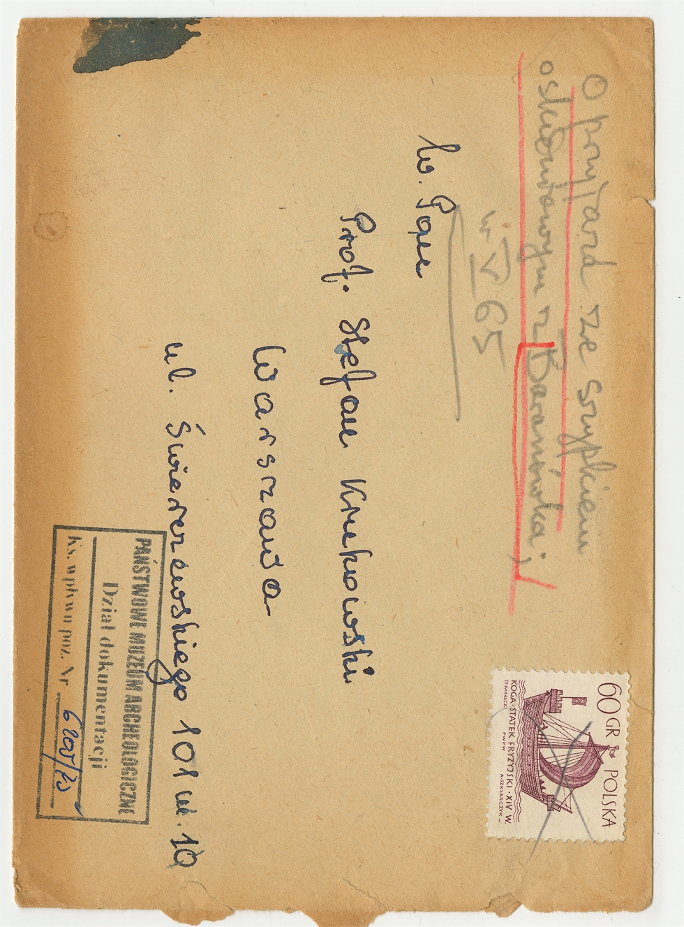 Rękopis - list Zygmunta Pyzika od Stefana Krukowskiego z dnia 5 maja 1965 roku - koperta (awers)