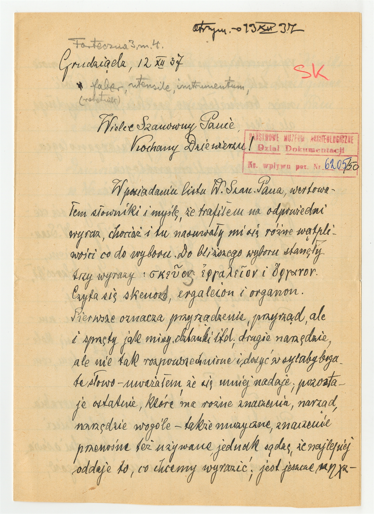 Rękopis listu B. Dyniewicza do Stefana Krukowskiego z dn. 12 XII [19]37 r.