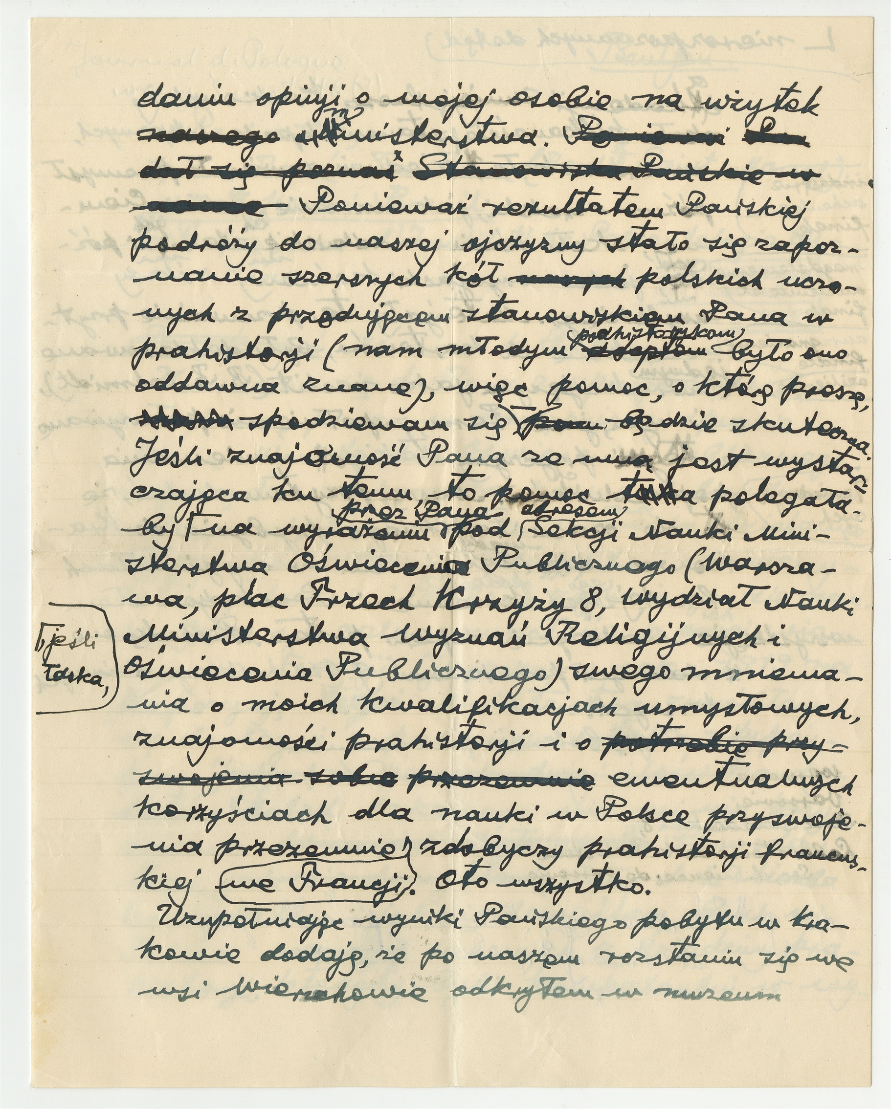 Rękopis listu - brudnopis Stefana Krukowskiego do Henri Breuil (cd)