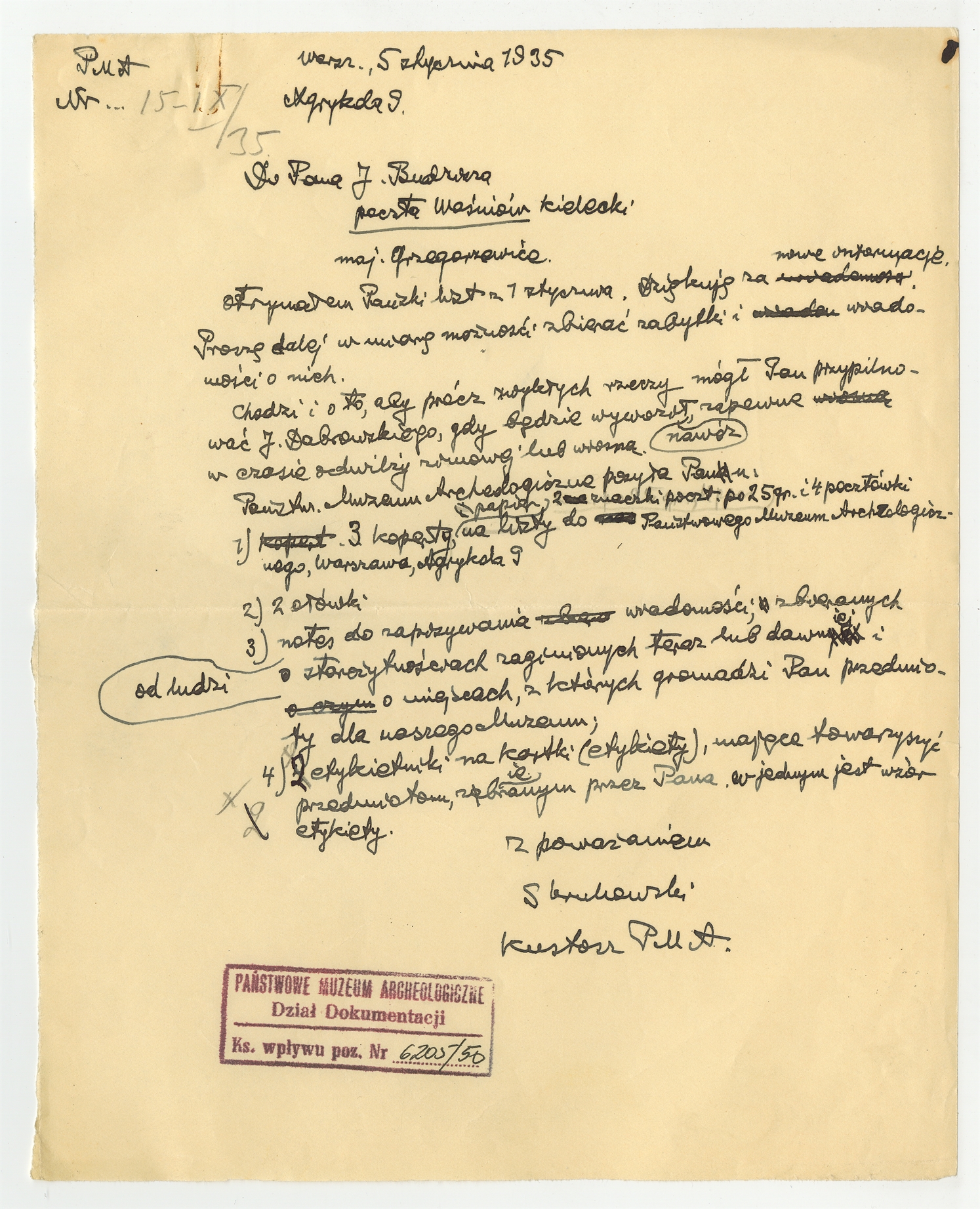 Rękopis listu - brudnopis Stefana Krukowskiego do Józefa Budzisza z dn. 5 I 1935 r.