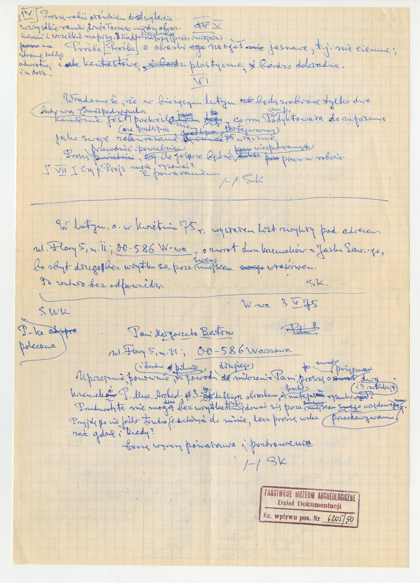 Rękopis listu - brudnopis Stefana Krukowskiego do Małgorzaty Bertino z dn. 15 II [19]75 (cd) wraz z notatką i brudnopisem listu z dn. 3 V [19]75 r.