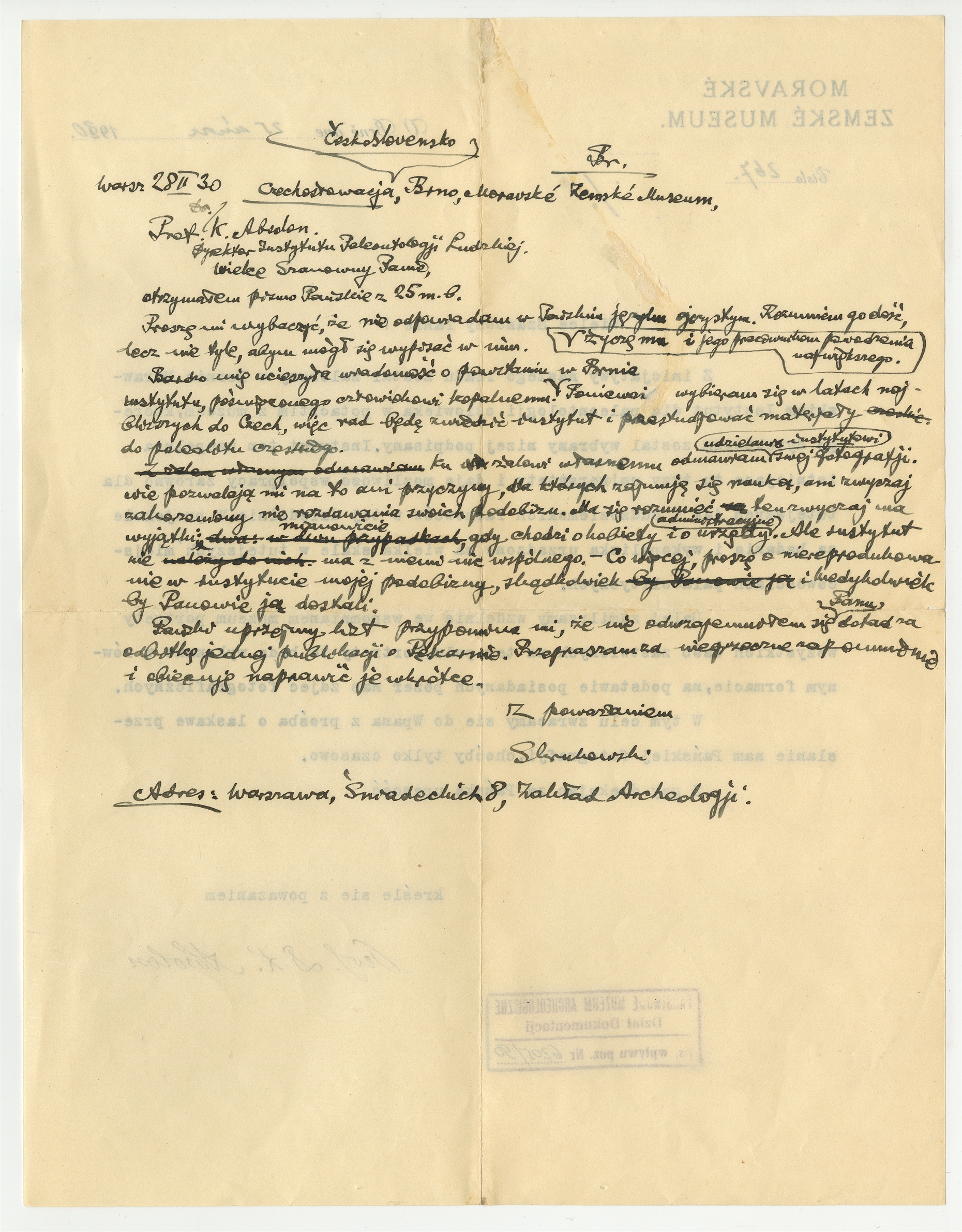 Rękopis listu - brudnopis Stefana Krukowskiego w odpowiedzi na list prof. K. Absolon z dn. 28 II 1930 r.
