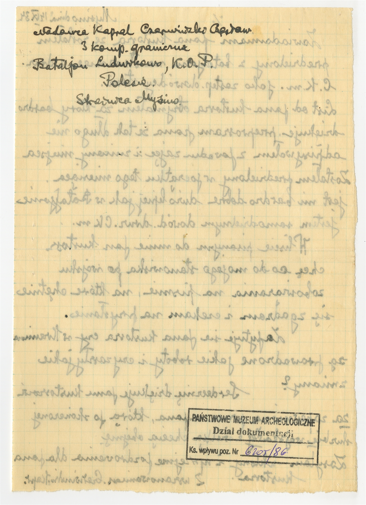 Rękopis listu Czerwińskiego Czesława z dn. 14 IX [19]34 r. - "Nadawca kapral Czerwiński Czesław …"