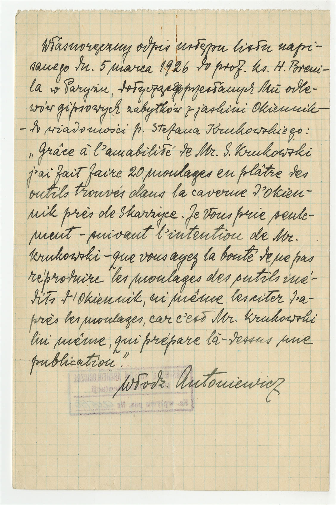 Rękopis listu do prof. ks. H. Brenila w Paryżu z dn. 5 III 1926 r.