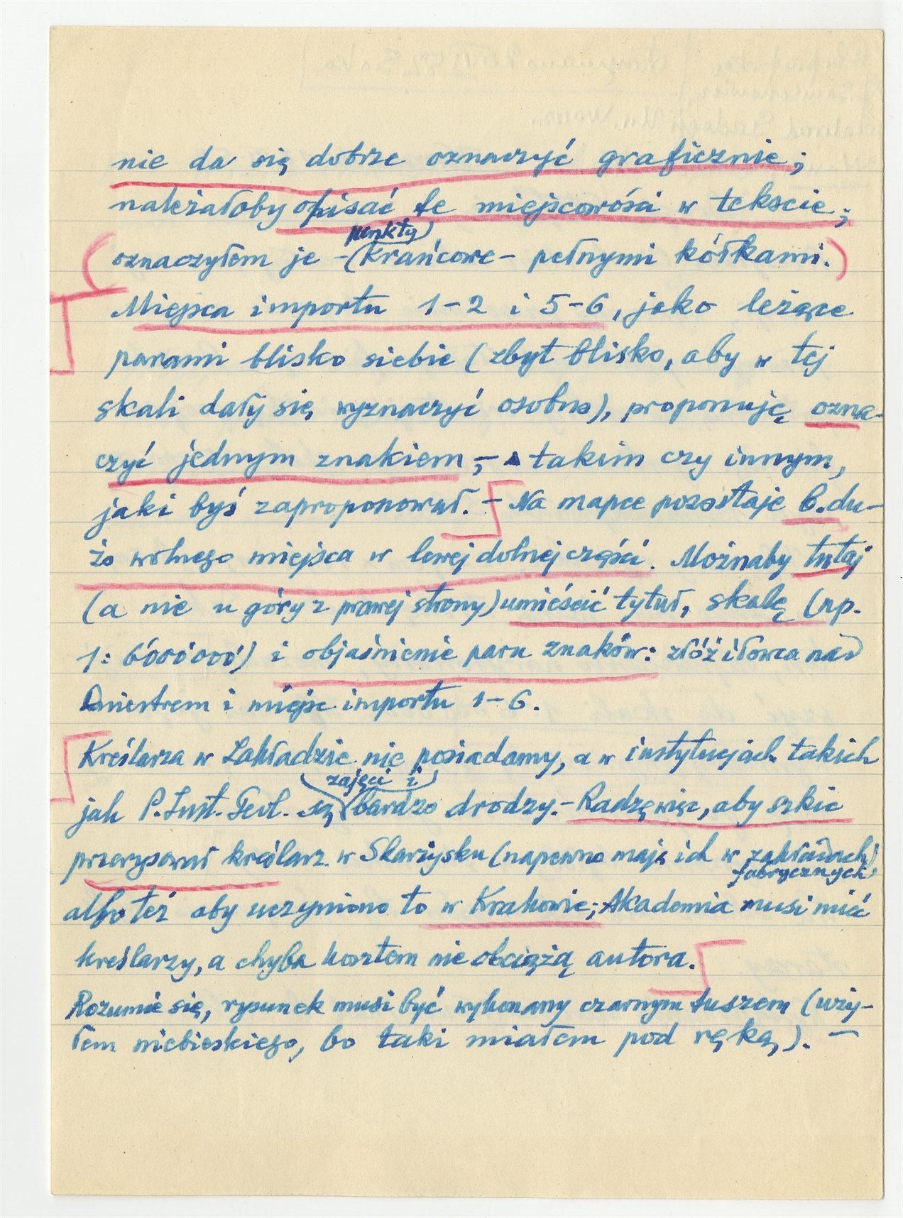 Rękopis listu J. Samsonowicza z Zakładu Geologii Uniwersytetu Warszawskiego do Stefana Krukowskiego wraz ze szkicem mapki Europy środkowo-wschodniej u podnóża Karpat Warszawa 18 VI [19]52 - strona 2: "(…) nie da się dobrze oznaczyć graficznie (…)"