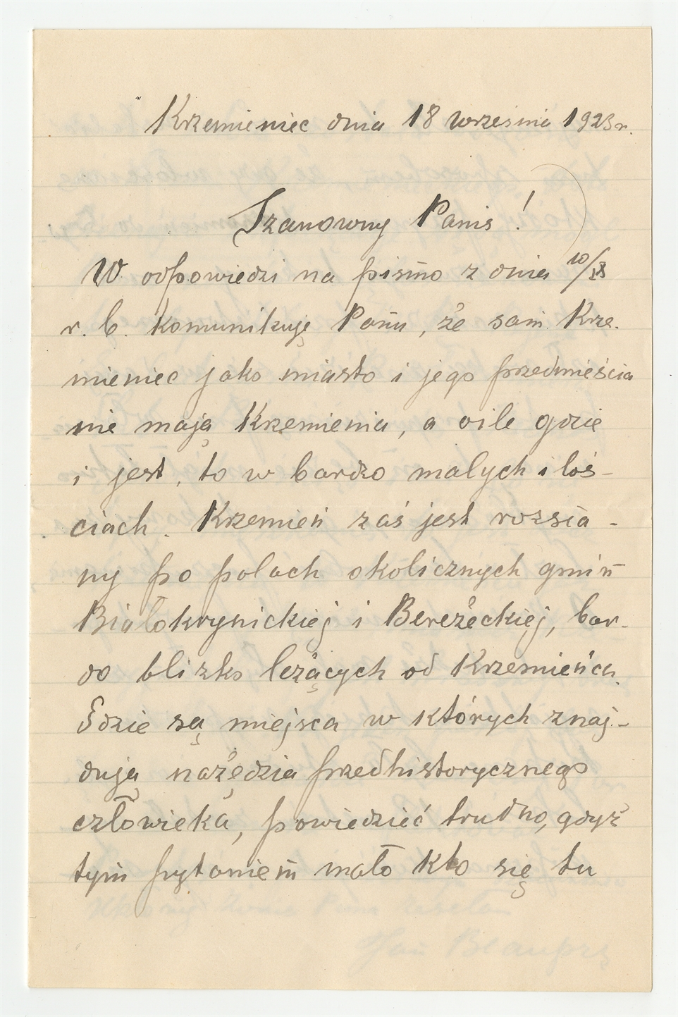 Rekopis listu Jana Beaupre burmistrza Krzemieńca z dn. 18 IX 1923 r.