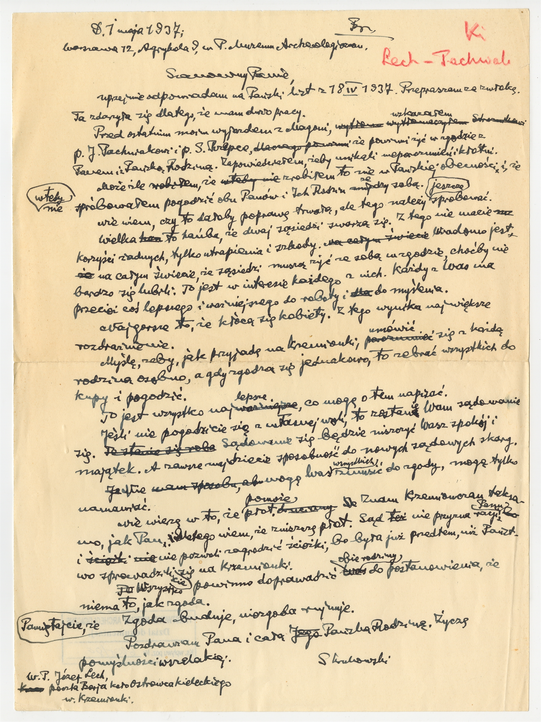 Rękopis listu prof. Stefana Krukowskiego z dnia 1 maja 1937 r. napisanego do Józefa Lecha