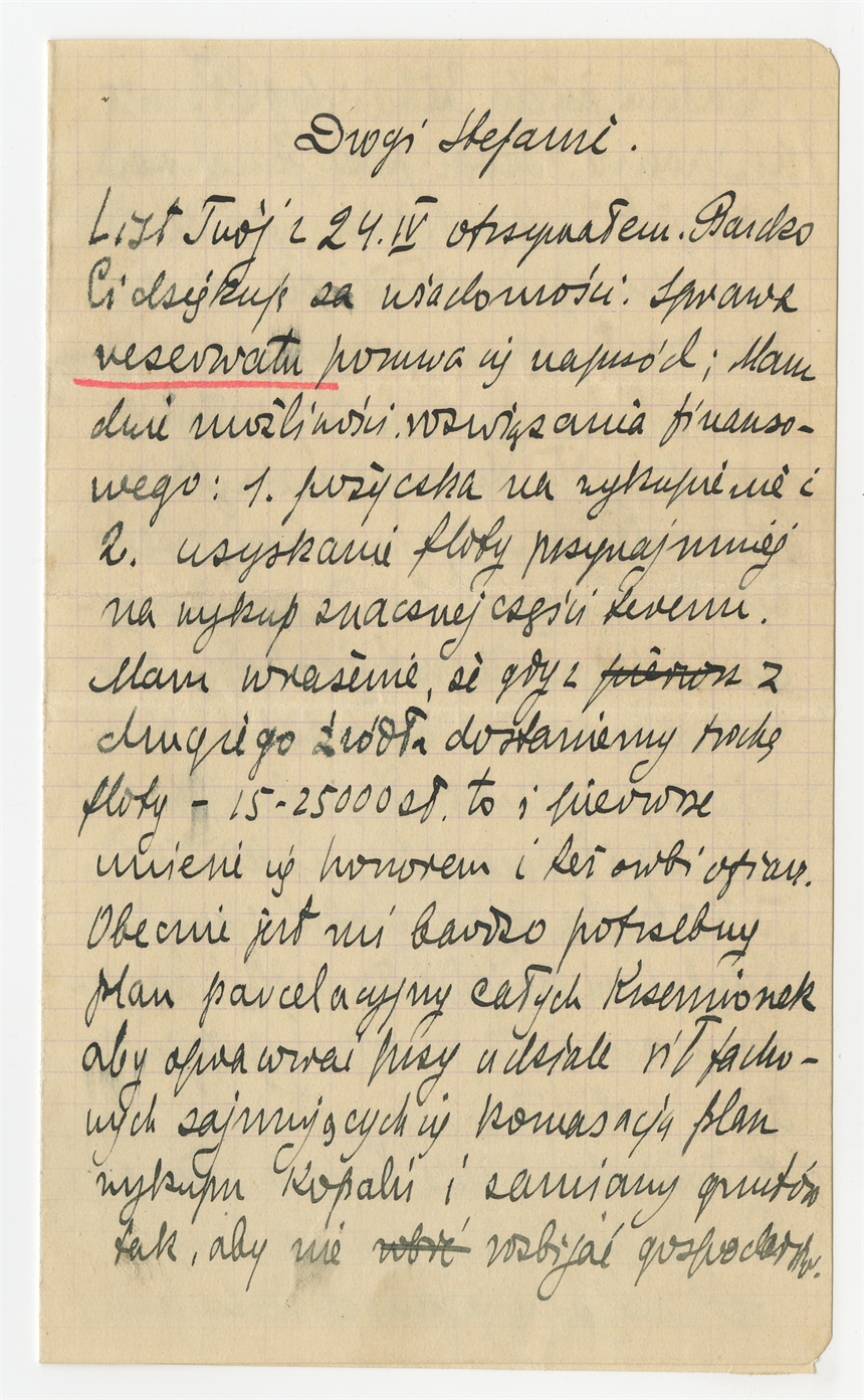 Rękopis listu R. Jakimowicza do prof. Stefana Krukowskiego: "Drogi Stefanie. List Twój z 24 IV otrzymałem …"