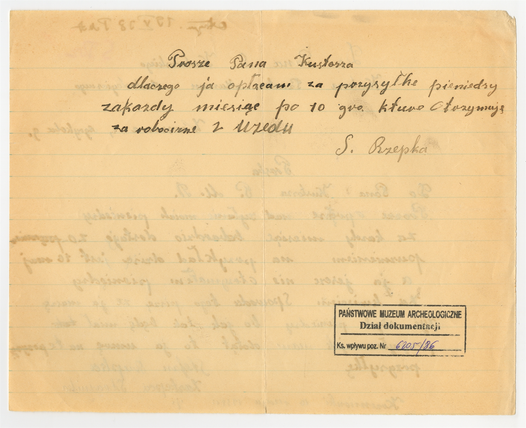 Rękopis listu Stefana Rzepki napisanego do Stefana Krukowskiego w sprawie opłacania przesyłki za każdy miesiąc po 10 gr