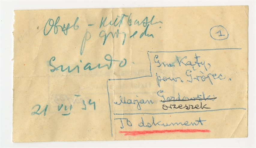 Rękopis - metryczka ze stanowiska Obręb powiat Grójec z roku 1934. Ręką S. Krukowskiego dopisek długopisem: autor rok powstania oraz numer metryczki - 2