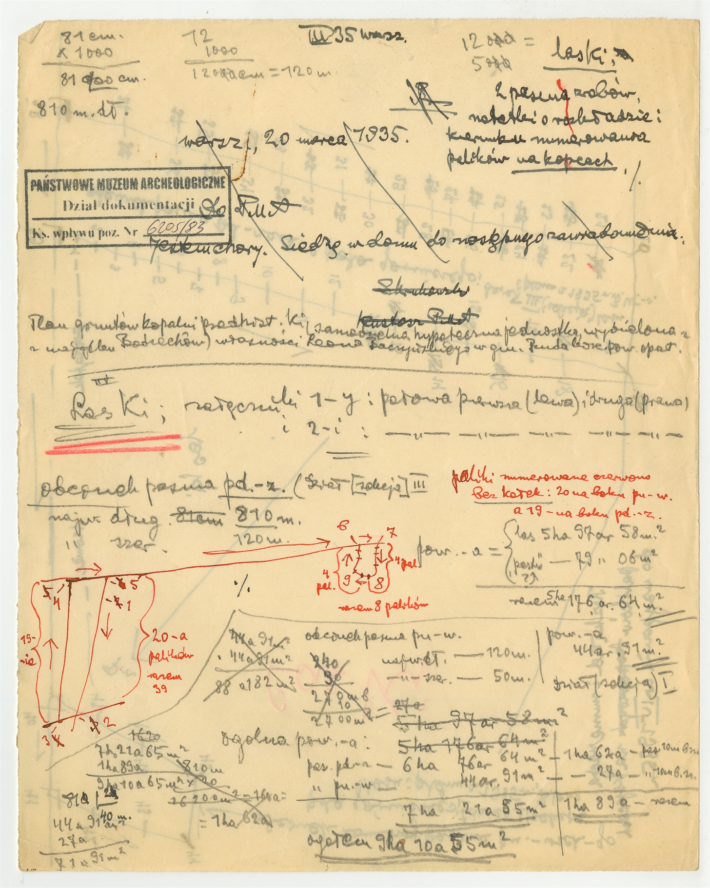 Rękopis - natatki Stefana Krukowskiego z marca [19]35 roku "O rozkładzie i kierunku numerowania palików na kopcach"