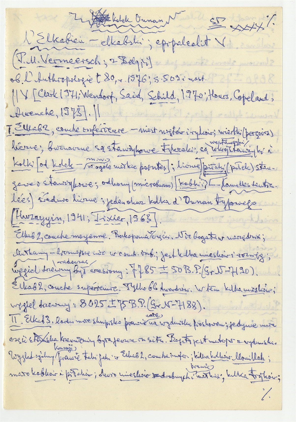 Rękopis notatek "Elkab" zawierających materiał do słownika - strona 2: "II. Elkab 3 c.d." "III. Elkab 4"