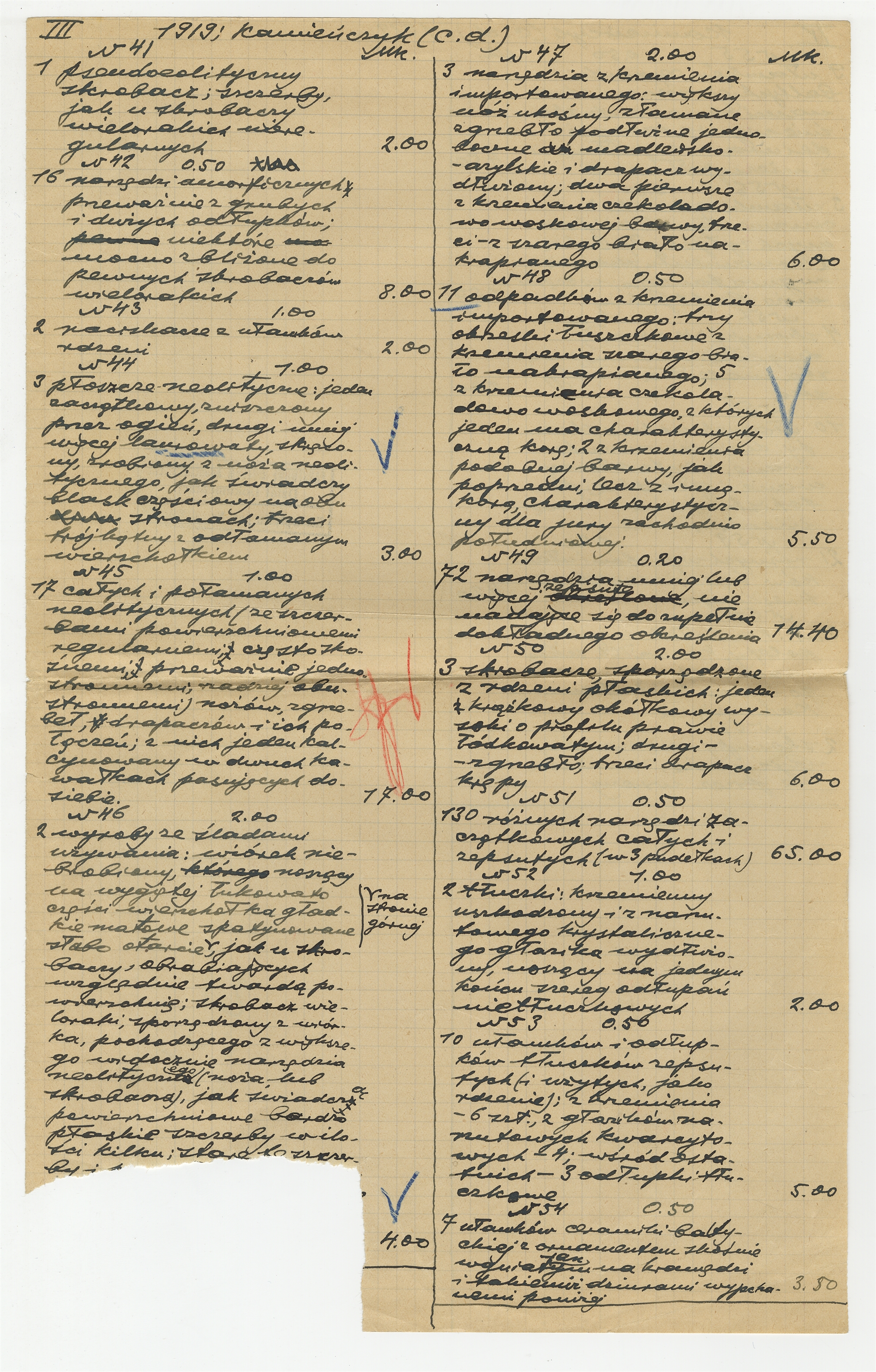 Rękopis notatek inwentaryzacyjnych S. Krukowskiego zatytułowany "wś Kamieńczyk pow. Sokołowski ur. Lipowy karcz wycieczka S. Krukowskiego" - strona 3: zatytułowana "1919; Kamieńczyk (c.d.) "pseudoeolityczny skrobacz" … "dziurami (…) poniżej" (autorska strona III) fragment strony (9 5x4 5 cm) oderwany;