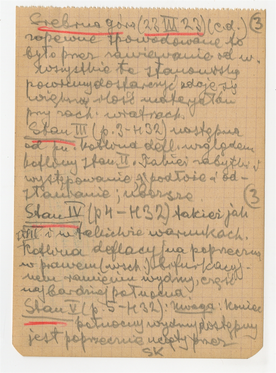 Rękopis notatek S. Krukowskiego nt. stanowiska archeologicznego w Srebrnej Górze (Warszawa-Wiśniewo - Praga Płn.) sporządzonych na luźnych kartkach pochodzących z notesu - strona 3: zatytułowana "Srebrna Góra (c.d.)" "zapewne spowodowane to było" … "poprzecznie ucięty przez" 23 III [19]23 (autorska strona 3)