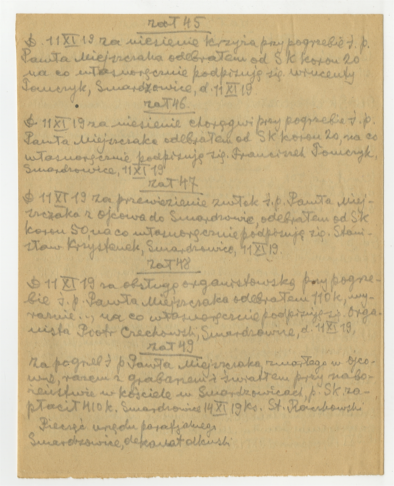 Rękopis notatek S. Krukowskiego zatytułowany "Kopje rachunków załączonych do sprawozdania z kamp. 1919 r." - strona 12: "zał. 45" … "zał. 49" (bez numeru strony)