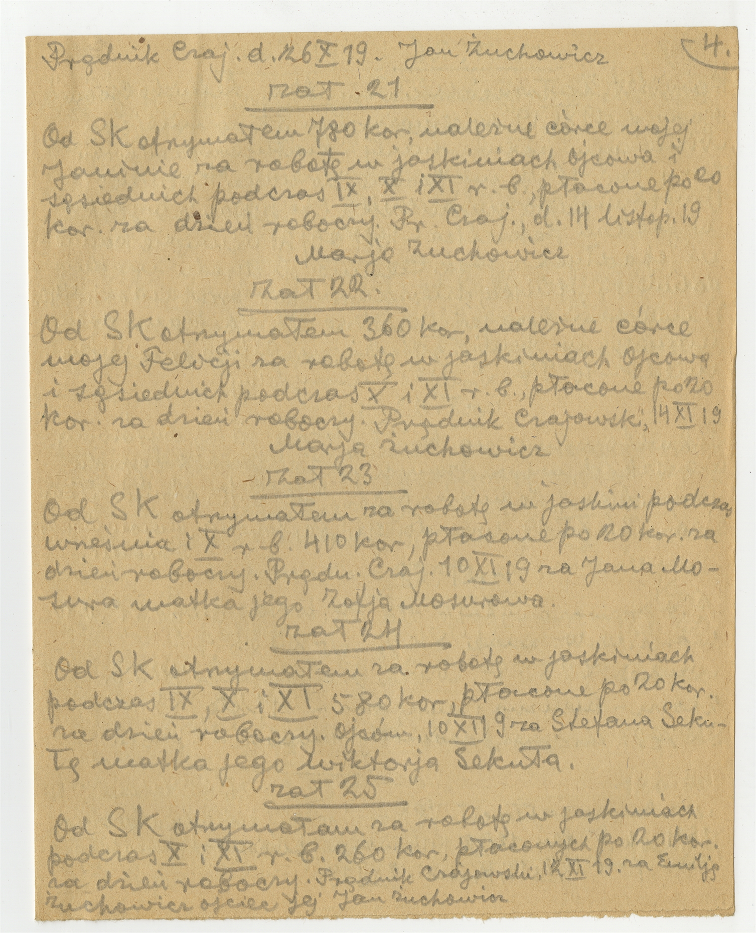 Rękopis notatek S. Krukowskiego zatytułowany "Kopje rachunków załączonych do sprawozdania z kamp. 1919 r." - strona 7: "zał. 21" … "zał. 24" (autorska strona 4)