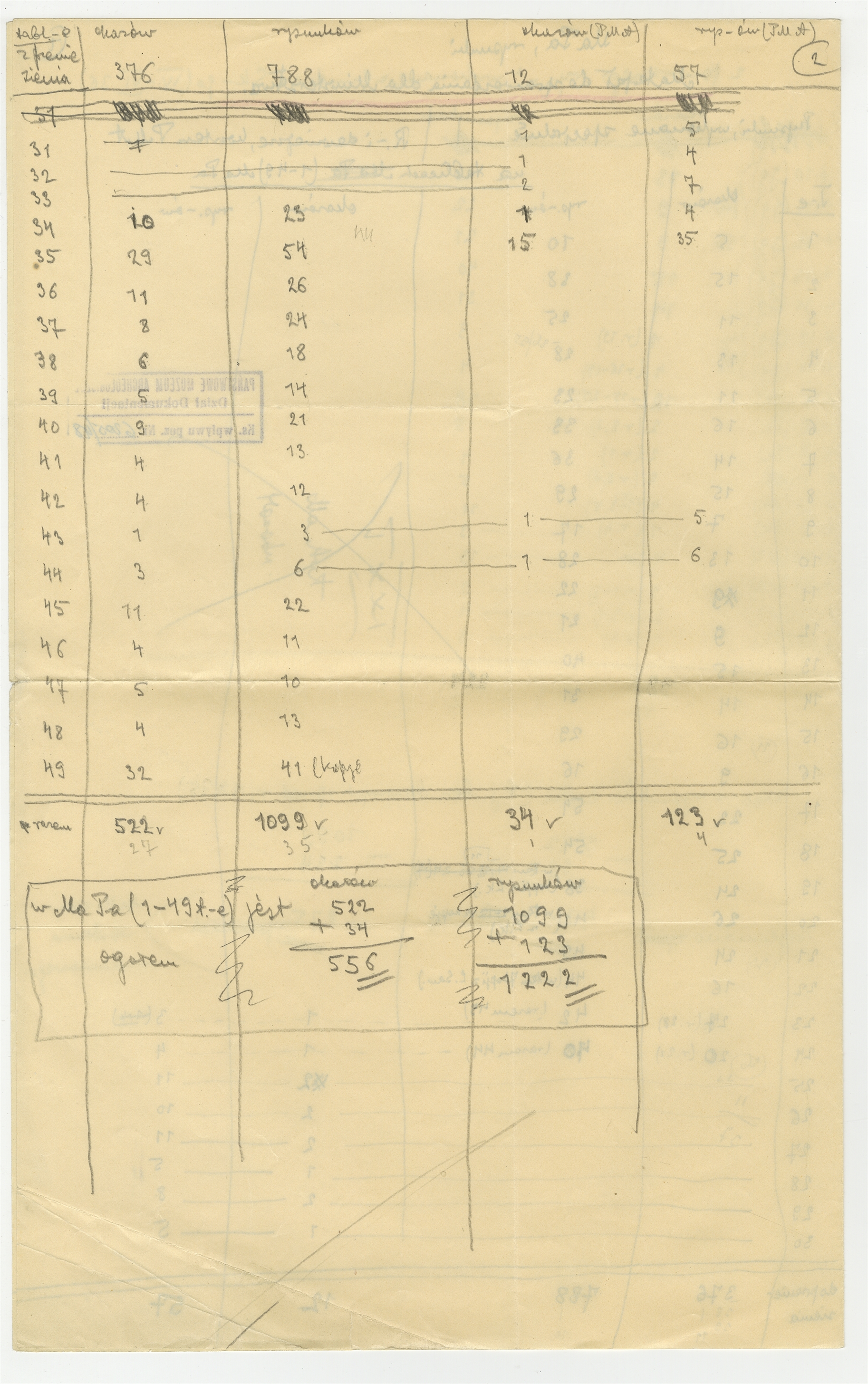 Rękopis notatek S. Krukowskiego zatytułowany "Materiały do sprawozdania dla Ministerstwa" - strona 2: tabelka - pozycje 31 - 49 (autorska strona 2)