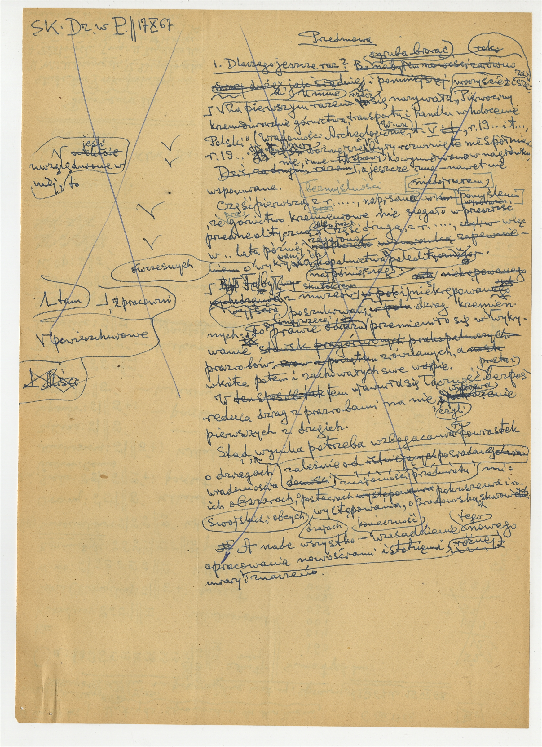 Rękopis notatek S. Krukowskiego zatytułowany "SK Dz w P" - cd. - strona 3: zatytułowana "Przedmowa" "I. Dlaczego jeszcze raz?" … "różne miary i znaczenie" 17 X [19]67 (bez numeru autorskiej strony)