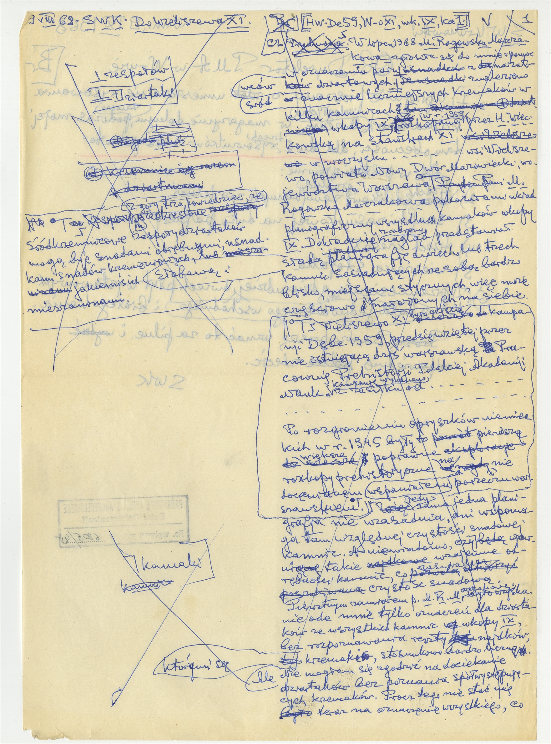 Rękopis notatek S. Krukowskiego zatytułowany "SWK - Do Wieliszewa" - strona 1: (przekreślona) zatytułowana "HW•De59 W-oXI ka 1" 9 VIII [19]68