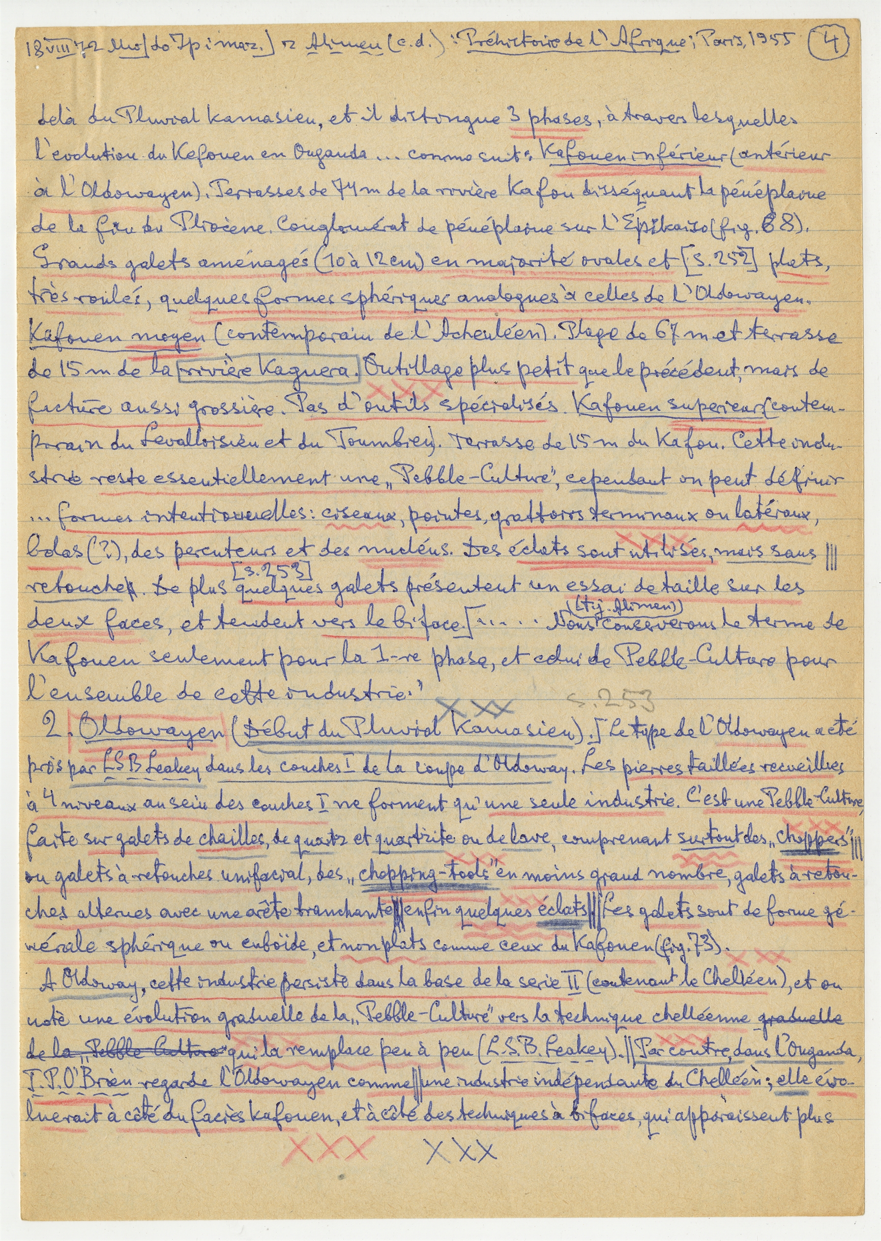 Rękopis notatek S. Krukowskiego zatytułowany "Z Alimen" - strona 5: zatytułowana "do Ip i maz" - "z Alimen (c.d.) zawiera notatki z publikacji - Prehistorie de l'Afrique; Paris 1955 dotyczy stron s.252 i S.253 18 VIII [19]72 (autorska strona 4)