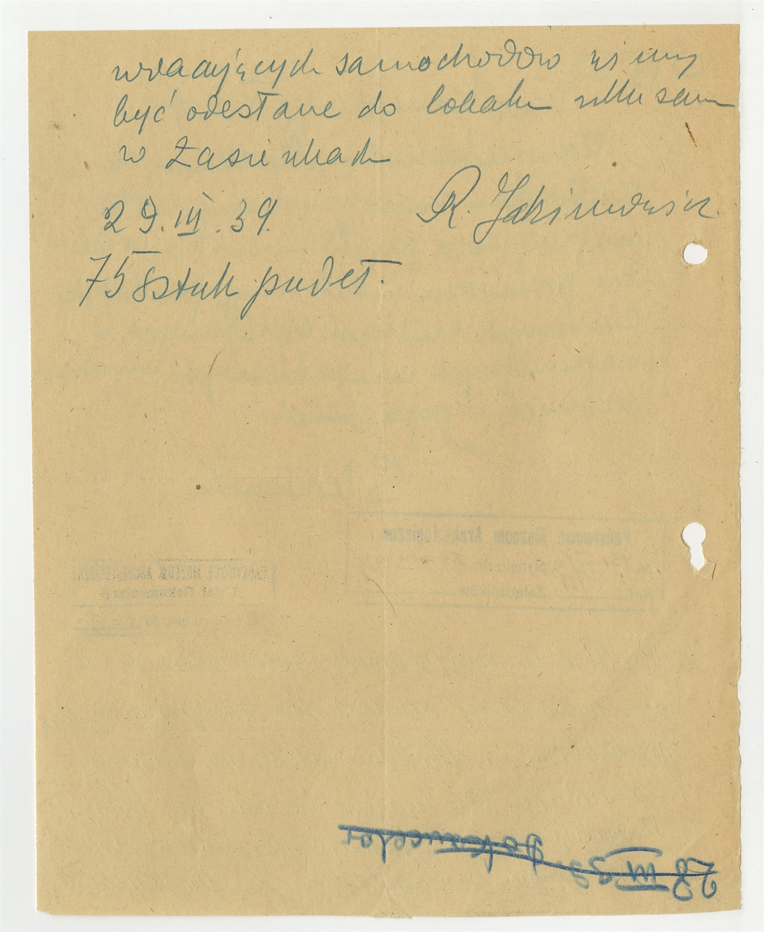 Rękopis - notatka R. Jakimowicza dotycząca treści zawiadomienia (cd)