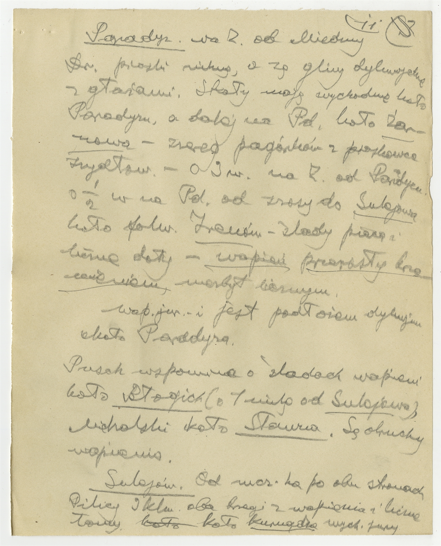 Rękopis - notatka Stefana Krukowskiego „A. Michalski: Badania geologiczne dokonywane w r. 1883(...)”. Autorska strona 11