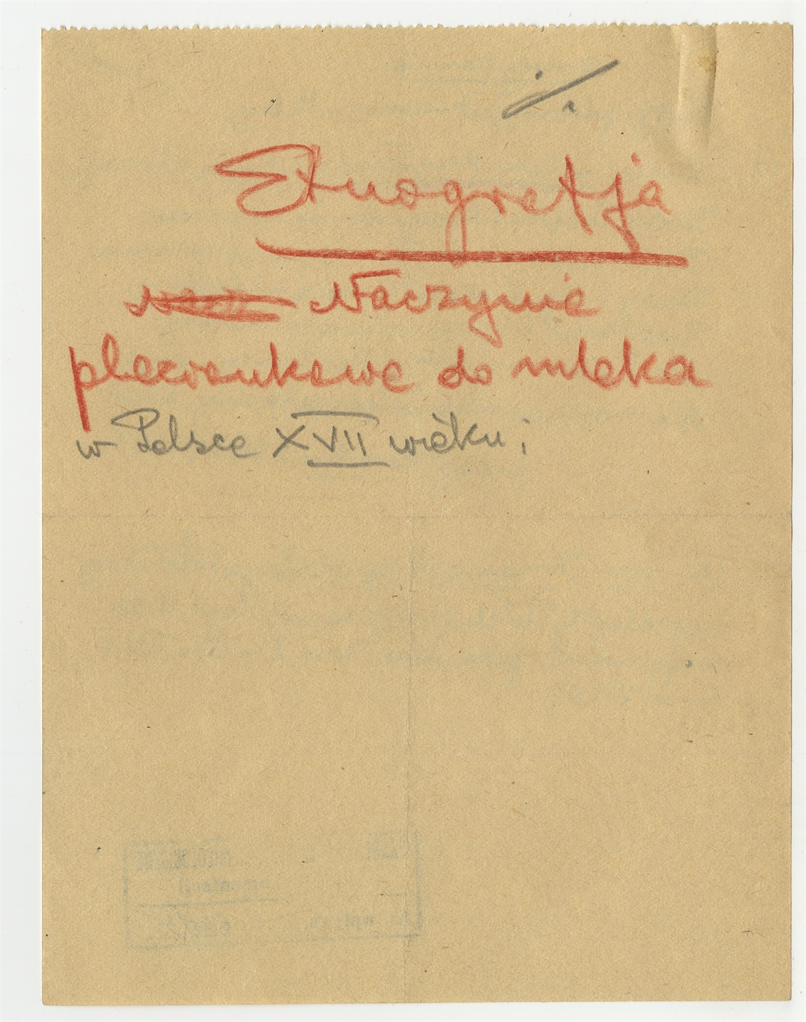 Rękopis - notatka Stefana Krukowskiego o naczyniu plecionkowym do mleka
