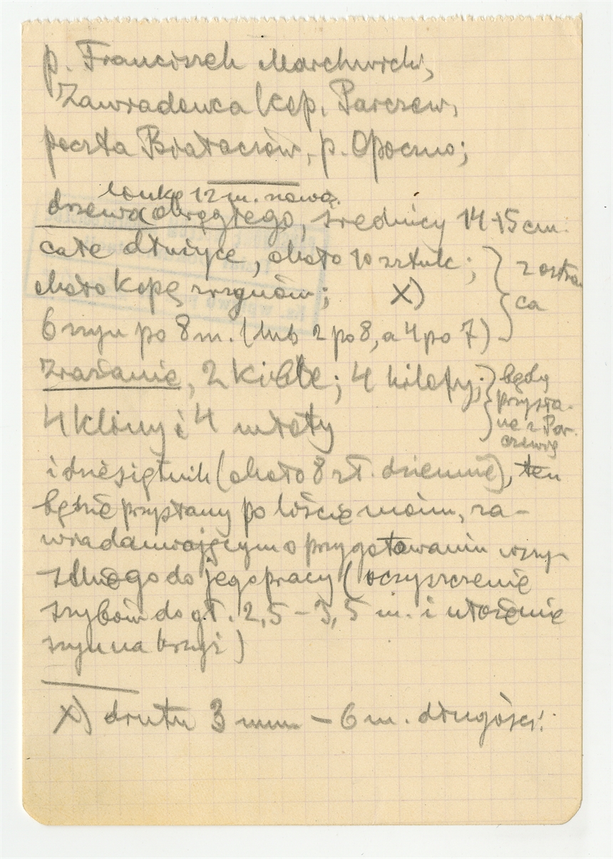 Rękopis - notatka Stefana Krukowskiego z danymi Franciszka Marchwickiego oraz wykazem sprzętu na badania w kopalni
