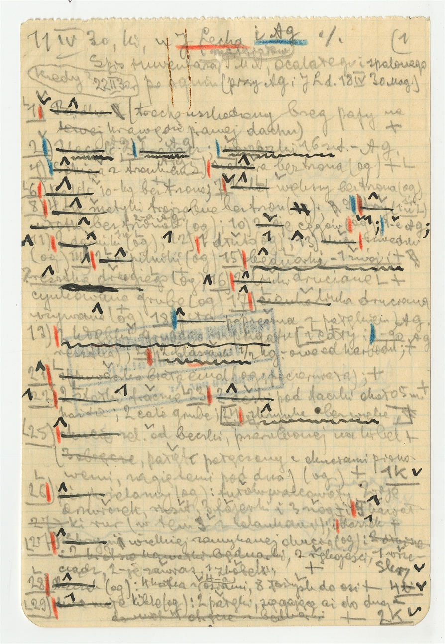 Rękopis - notatka Stefana Krukowskiego z dnia 11 IV [19]30 ze spisem "inwentarza i materiałów PMA ocalałego i spalonego po ogniu" - strona 1