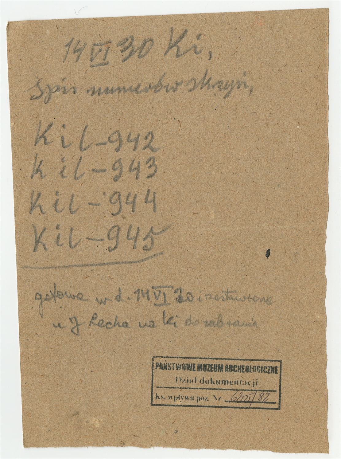 Rękopis - notatka Stefana Krukowskiego z dnia 14 VI [19]30 roku ze spisem numerów skrzyń