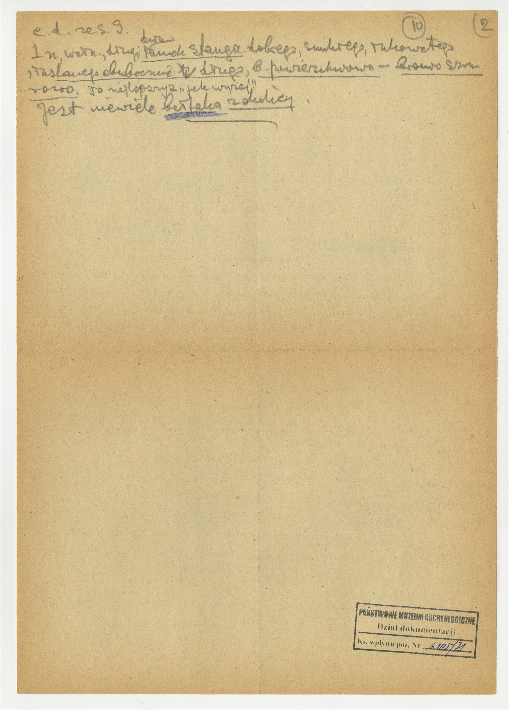Rękopis - notatka Stefana Krukowskiego z dnia 17 III [19]61 roku dotycząca neolitu Gródka Nadbużnego na podstawie materiałów J. Kowalczyka. Strona 10 (2)