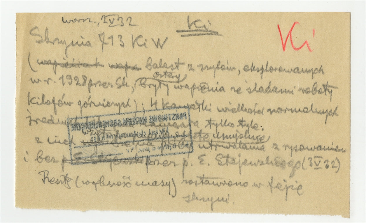 Rękopis - notatka Stefana Krukowskiego z dnia 2 V [19]32 roku z wykazem zawartości skrzyni 714