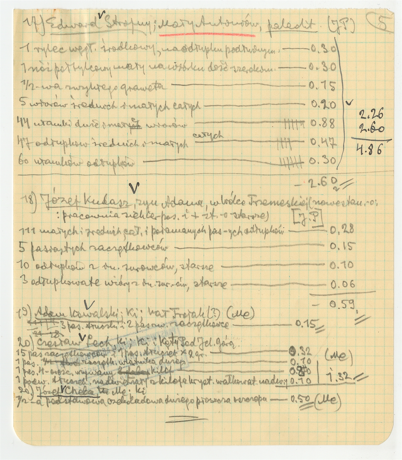 Rękopis - notatka Stefana Krukowskiego z dnia 25 II [19]37 roku: "Materiały do kupna zebrane w 1936 roku". Lista zabytków i ich wycena. Strona 5