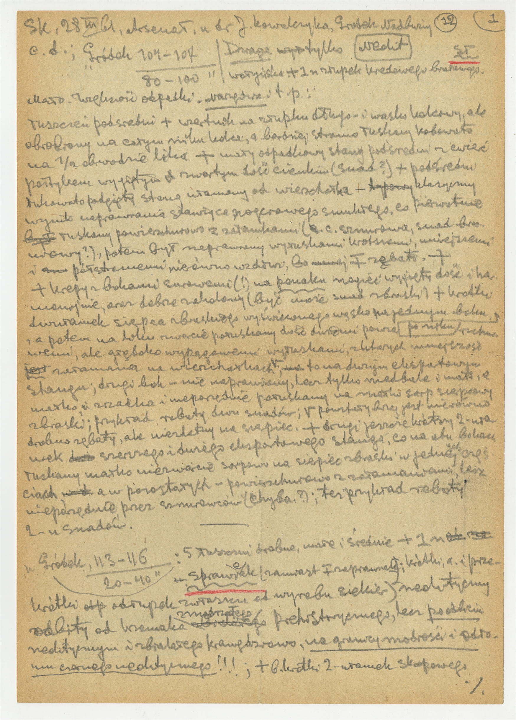 Rękopis - notatka Stefana Krukowskiego z dnia 28 III [19]61 roku dotycząca neolitu Gródka Nadbużnego na podstawie materiałów J. Kowalczyka. Strona 12 (1)