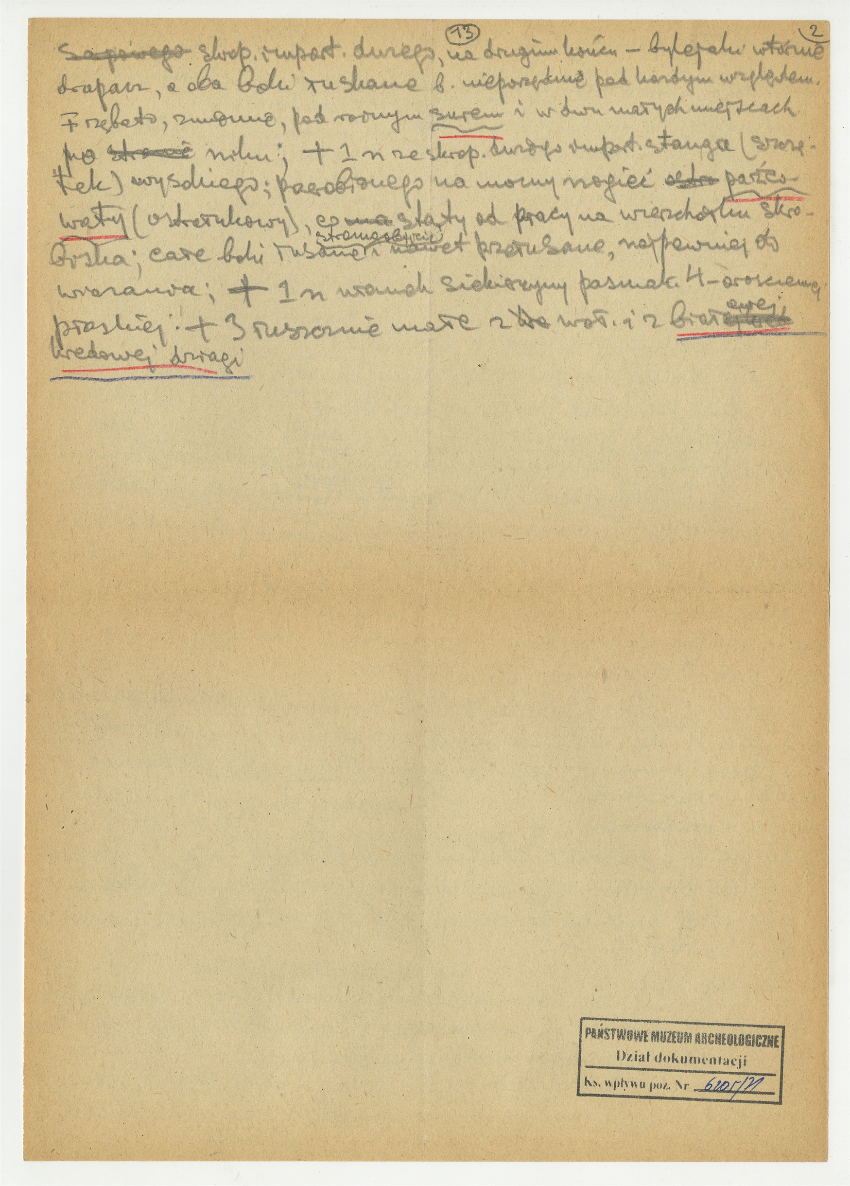 Rękopis - notatka stefana Krukowskiego z dnia 29 III [19]61 roku dotycząca neolitu Gródka Nadbużnego na podstawie materiałów J. Kowalczyka. Strona 13 (1)