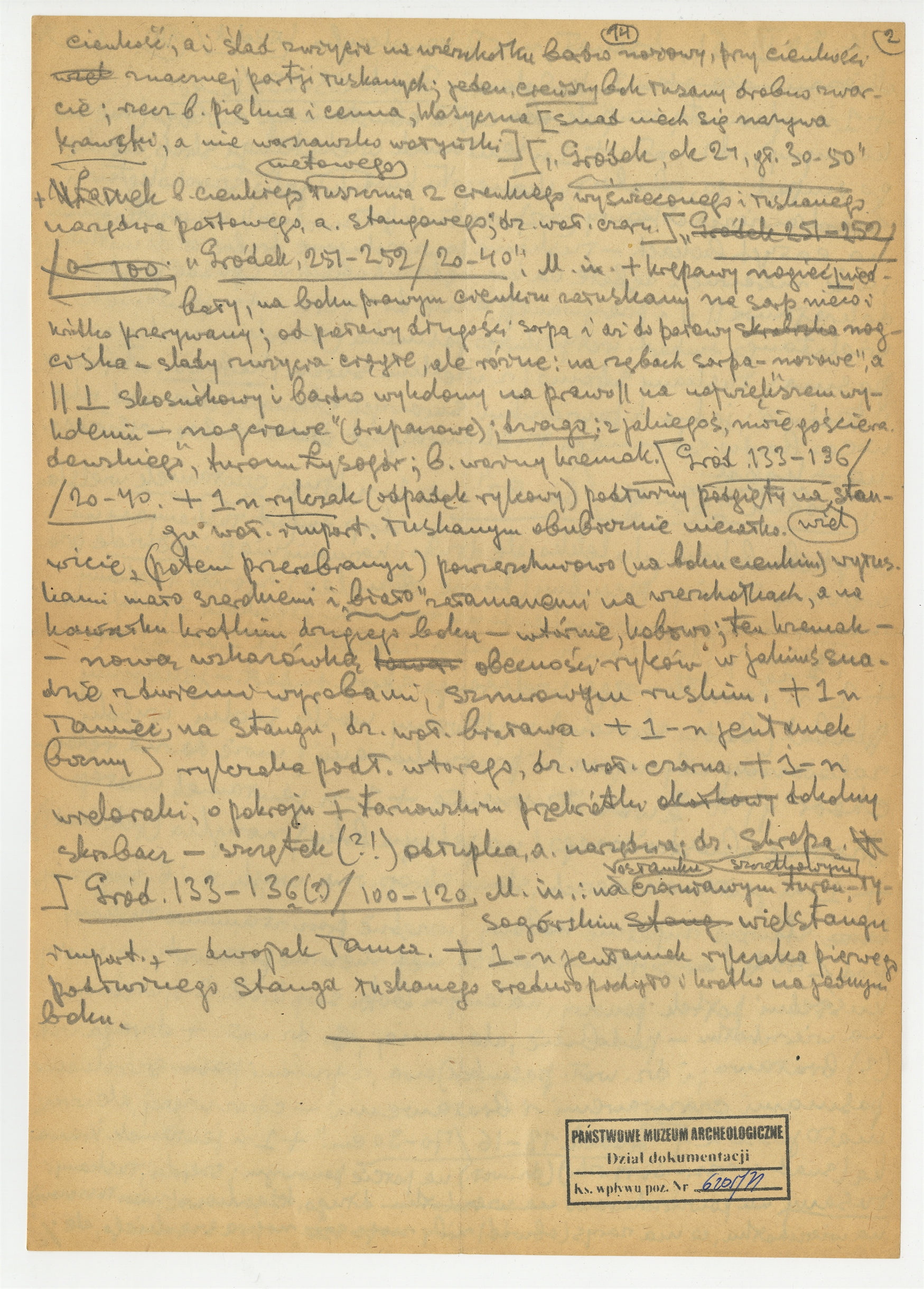Rękopis - notatka Stefana Krukowskiego z dnia 30 III [19]61 roku dotycząca neolitu Gródka Nadbużnego na podstawie materiałów J. Kowalczyka. Strona 14 (1)