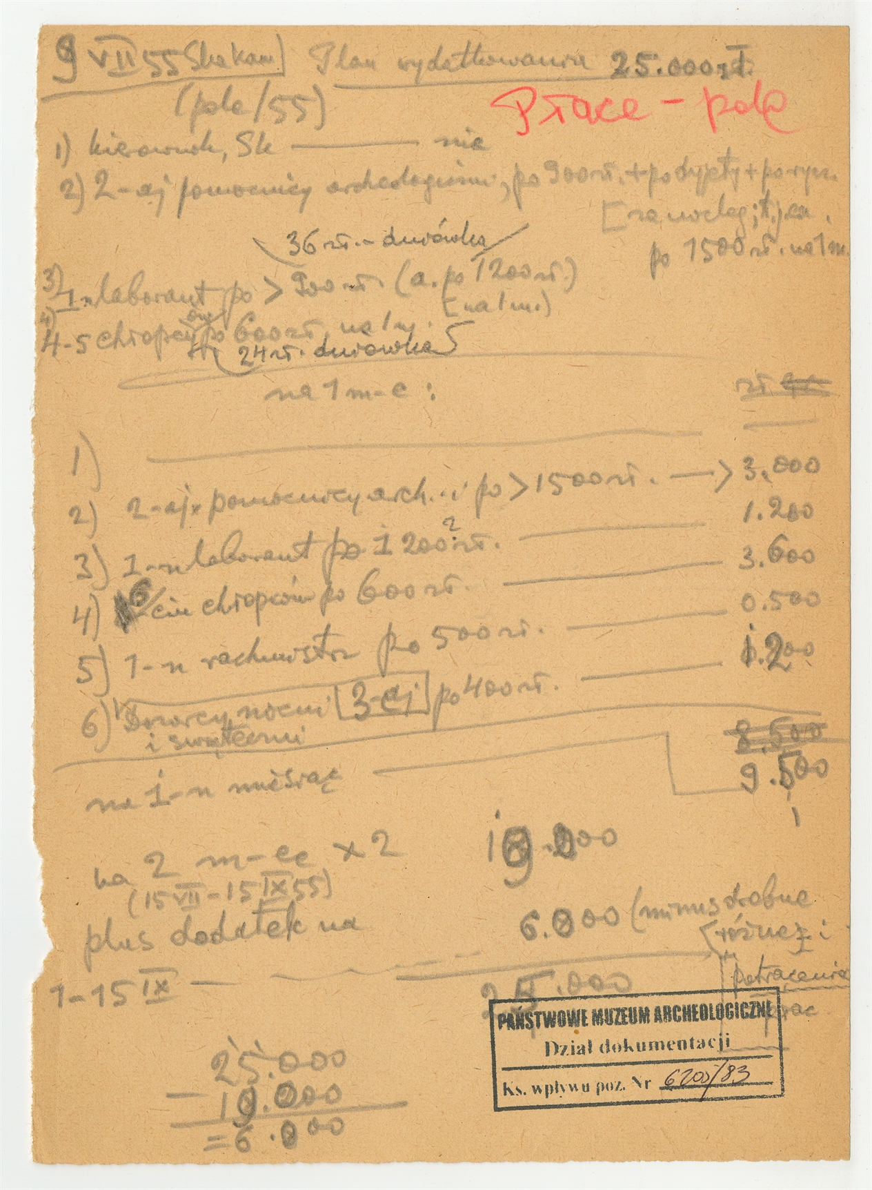 Rękopis - notatka Stefana Krukowskiego z dnia 9 VII [19]55 roku z planem wydatkowania 25.000 zł