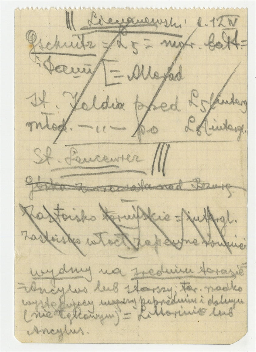 Rękopis - notatka Stefana Krukowskiego z planem refaratu „ Referat S K na zjazd geologiczny w d. 14 kwietnia 1923 r. ". Autorska strona 9